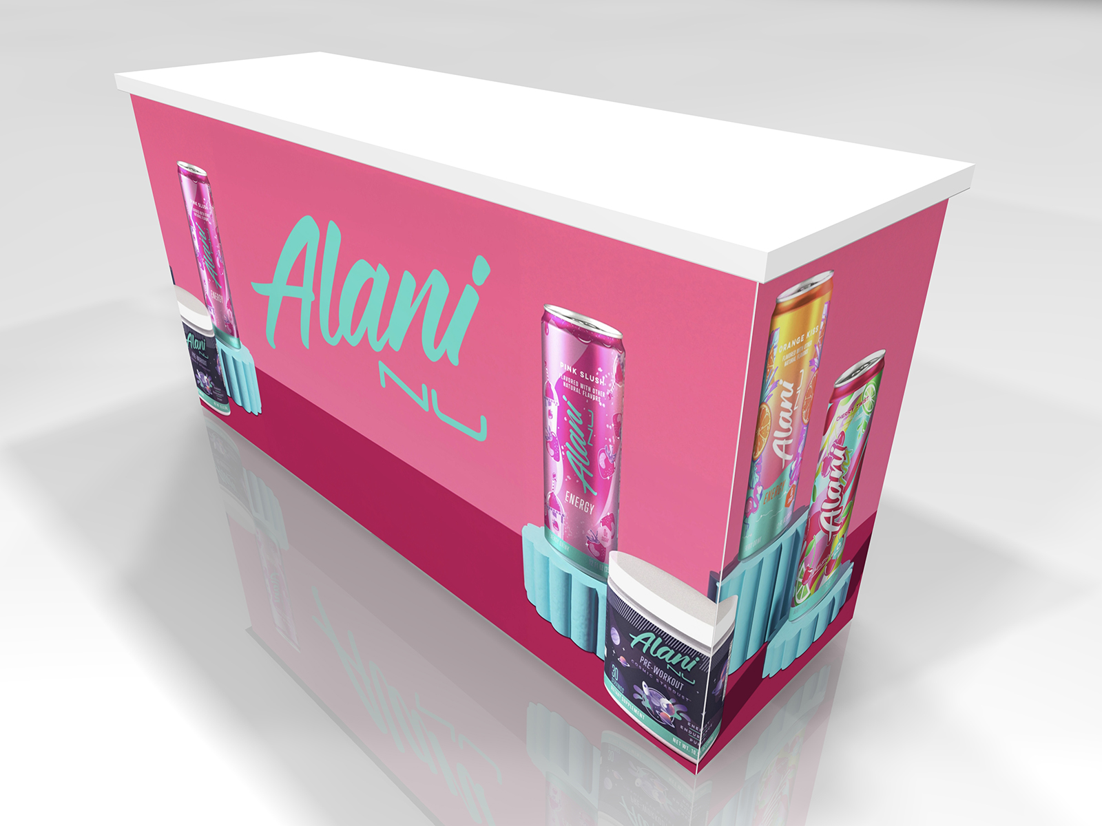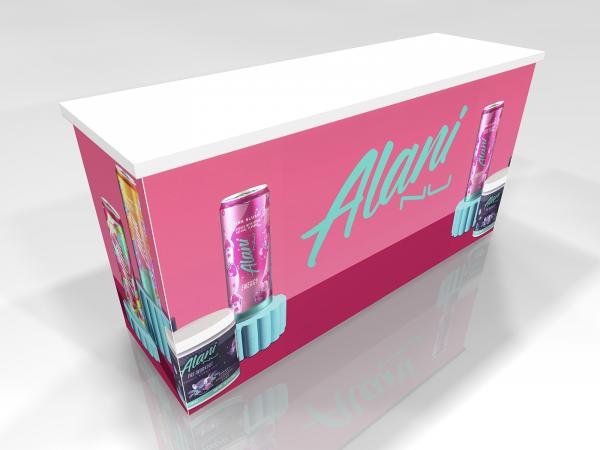 Quite often, a few custom elements added to the design can give the entire design a custom look even if it’s as simple as some colorful laminated workstations, shelves, or a reception counter. Custom laminated soffits and backlighting are also nice touches that are inexpensive and well worth the investment. As a bonus, if you re-rent the same exhibit, your second rental will most likely be less expensive, since your first rental covered the cost of those custom components.