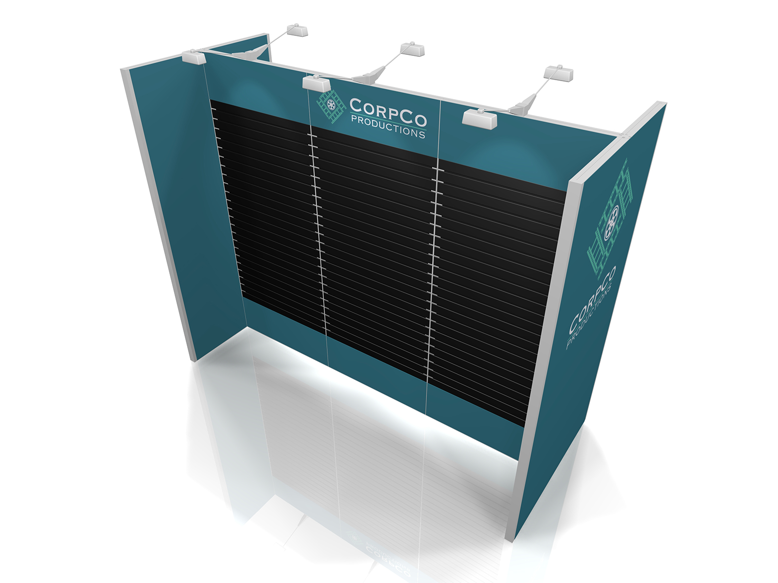 Quite often, a few custom elements added to the design can give the entire design a custom look even if it’s as simple as some colorful laminated workstations, shelves, or a reception counter. Custom laminated soffits and backlighting are also nice touches that are inexpensive and well worth the investment. As a bonus, if you re-rent the same exhibit, your second rental will most likely be less expensive, since your first rental covered the cost of those custom components.