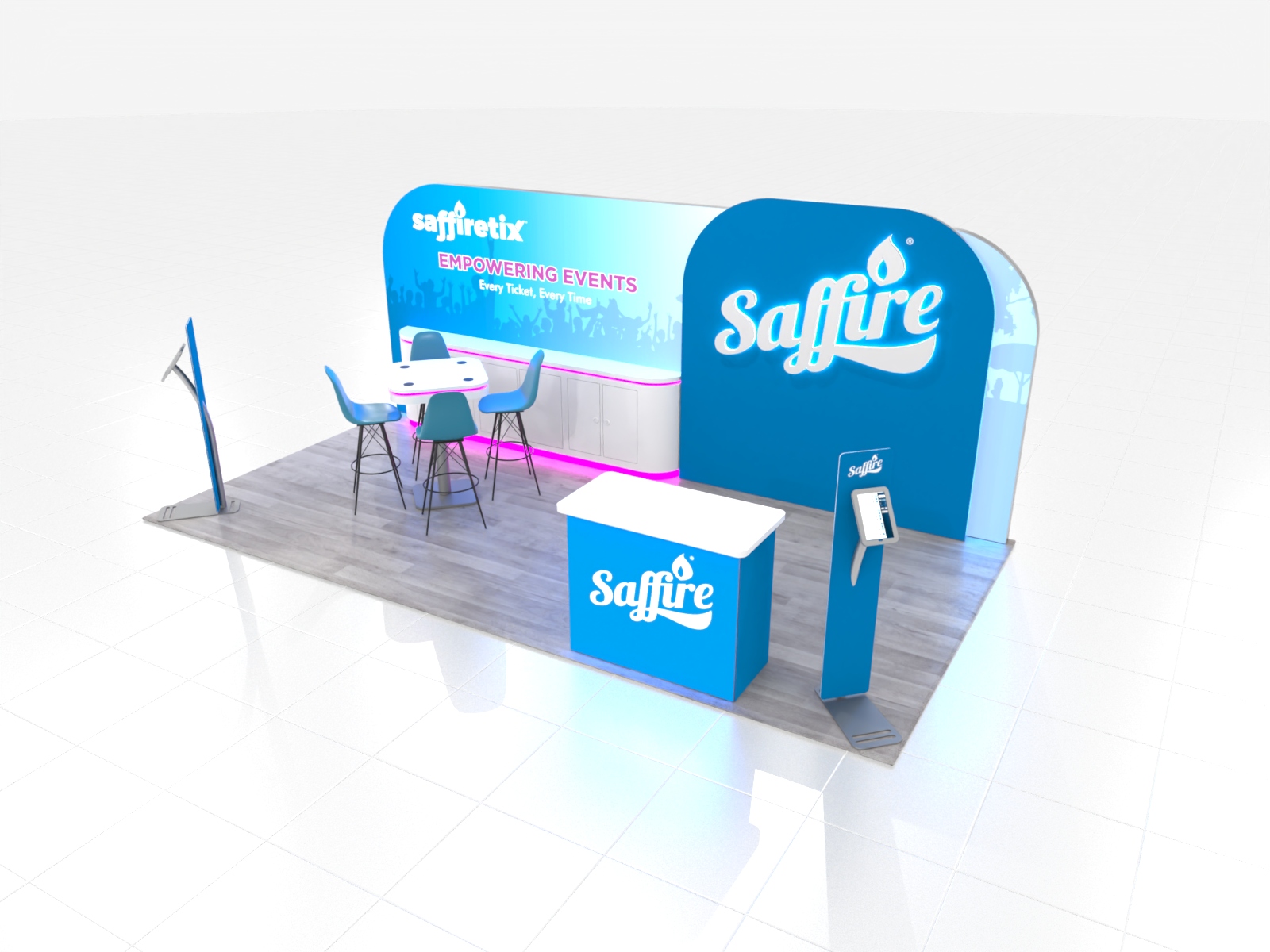 • Graphics: From one to multiple tension fabric and direct print graphics. Velcro and silicone edge tension fabric connections.