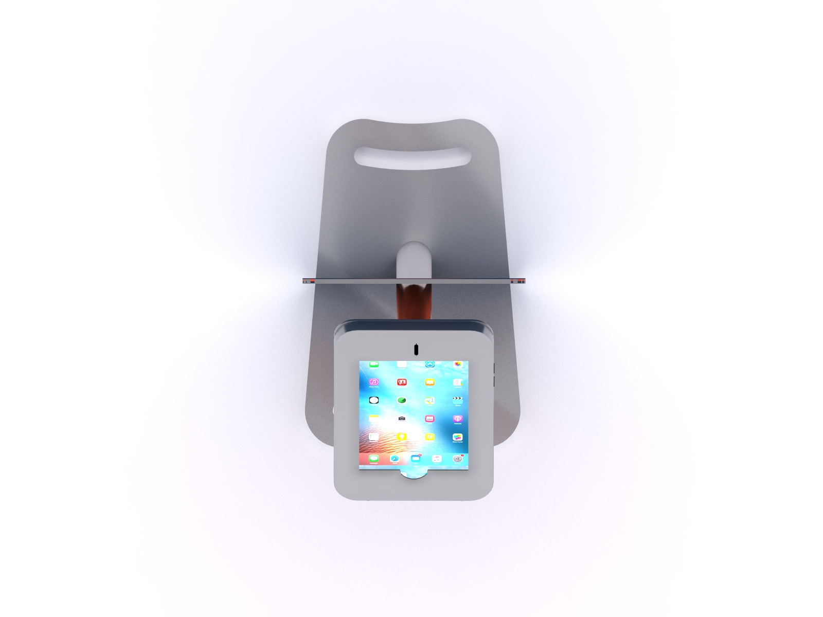 The Swivel Stop™ is an innovative patent-pending feature exclusive to our iPad kiosk and mounts. The Swivel Stop makes it easy to rotate the locking clamshell frame between portrait and landscape position without tools. As you rotate the clamshell frame, it "snaps" into either a vertical or horizontal position within a 180 degree range. The 180 degree radius prevents the iPad, when connected to a power cord, from twisting the cord.